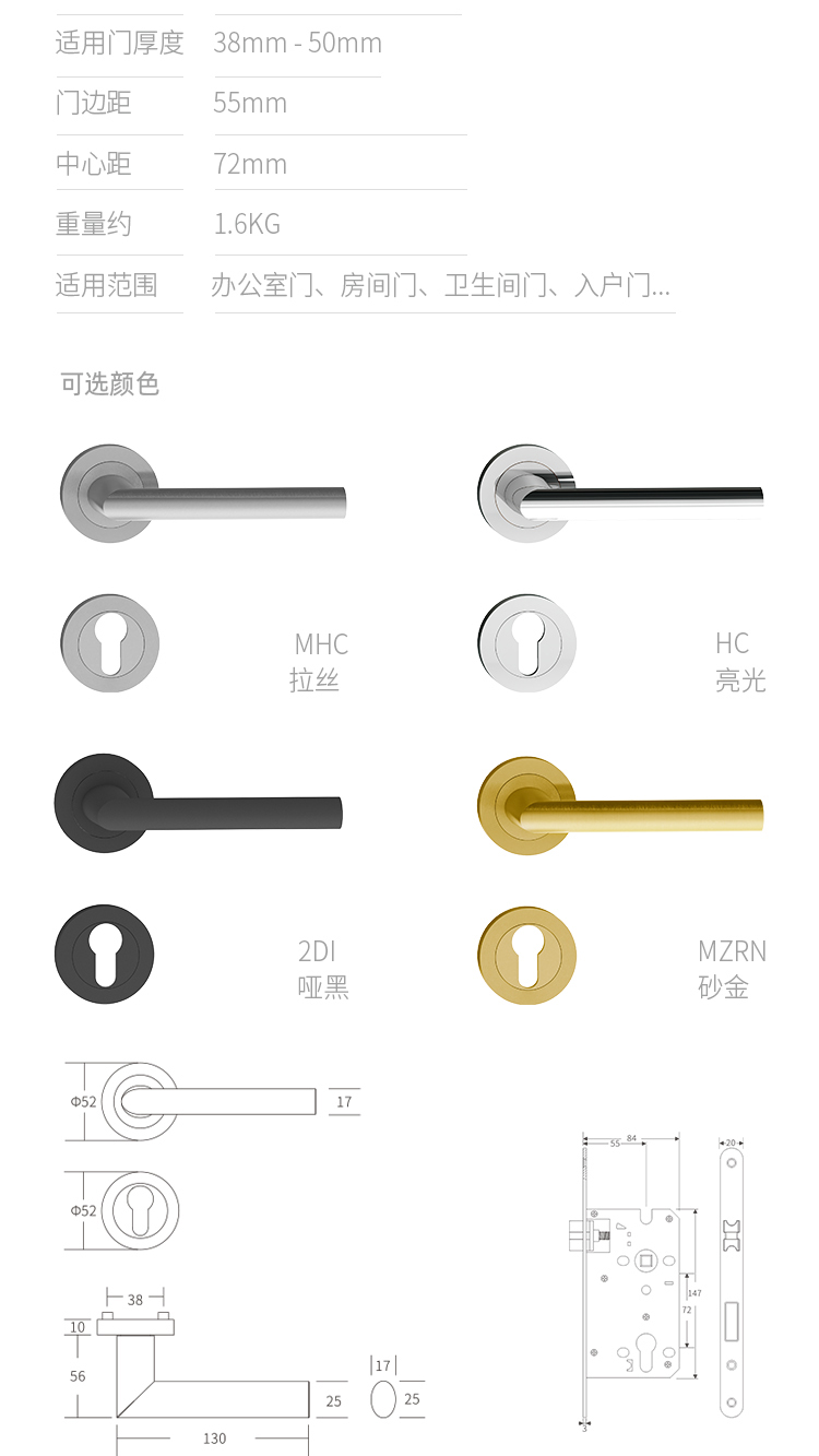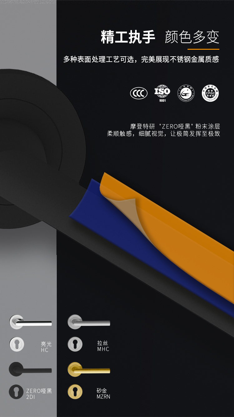 • 产品颜色:拉丝MHC、亮光HC、哑黑2DI、砂金MZRN