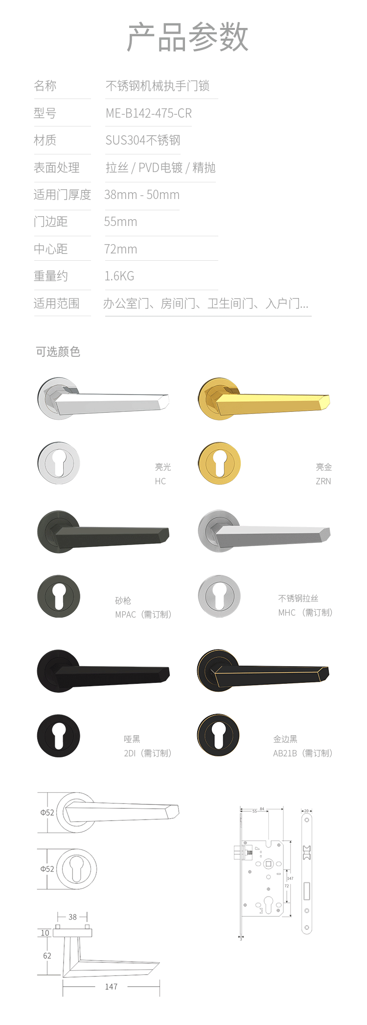 • 产品颜色:亮光HC、拉丝MHC、亮金ZRN、哑黑2DI、砂枪MPAC、金边黑AB21B