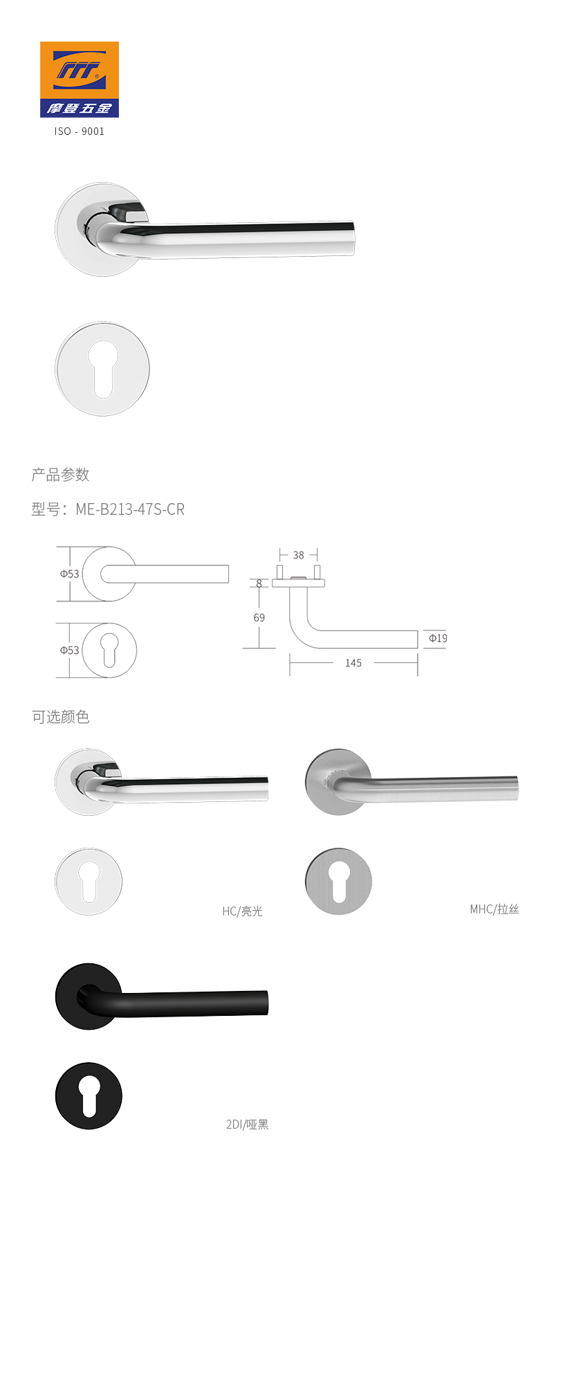 • 产品颜色:MHC/拉丝、HC/亮光、2DI/哑黑