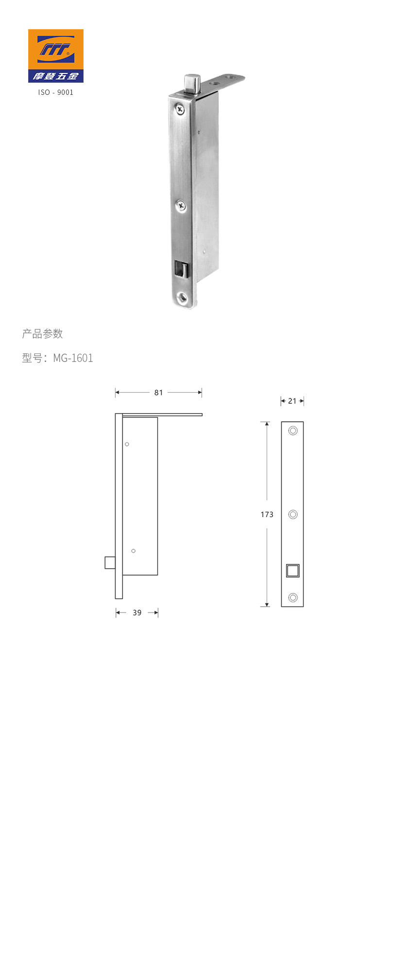 • 产品型号:插销|MG-1601(自动暗插销)