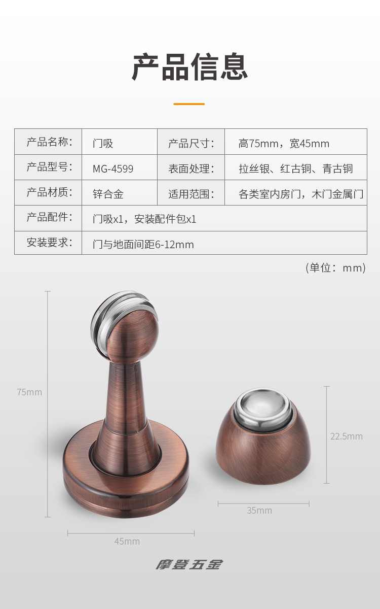 • 产品型号:门磁吸|MG-4599