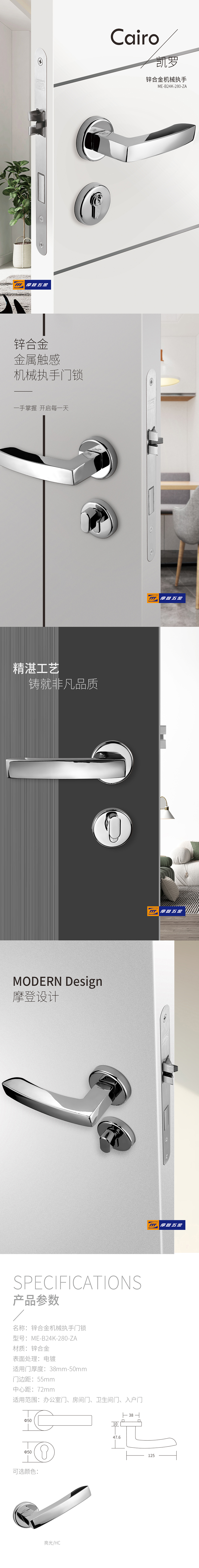 • 产品系列:锌合金分体门锁