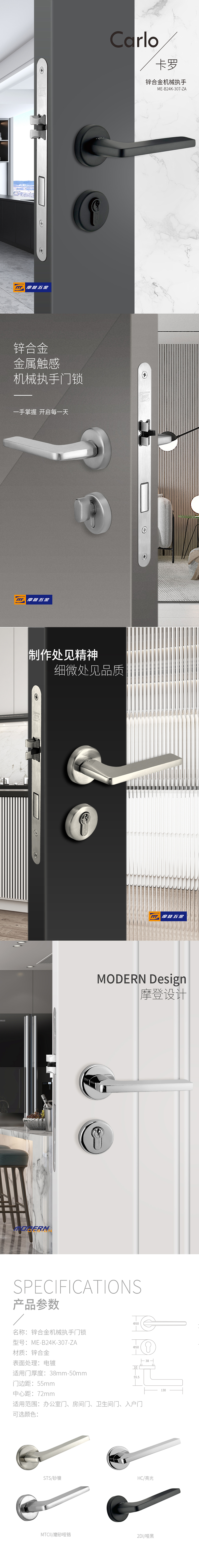 • 产品系列:锌合金分体门锁