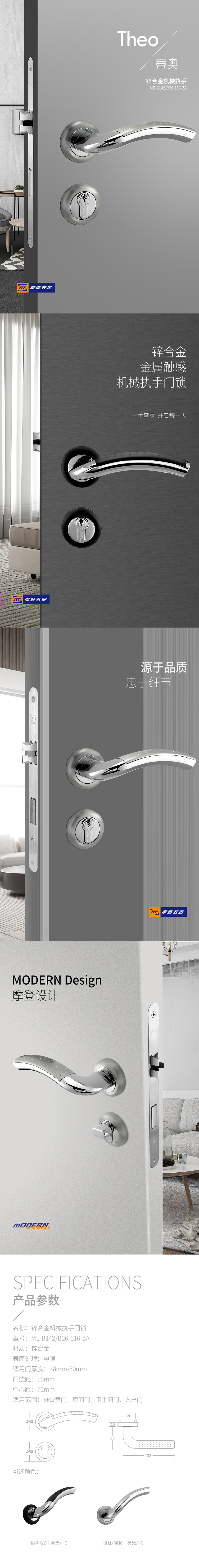 • 产品系列:锌合金分体门锁