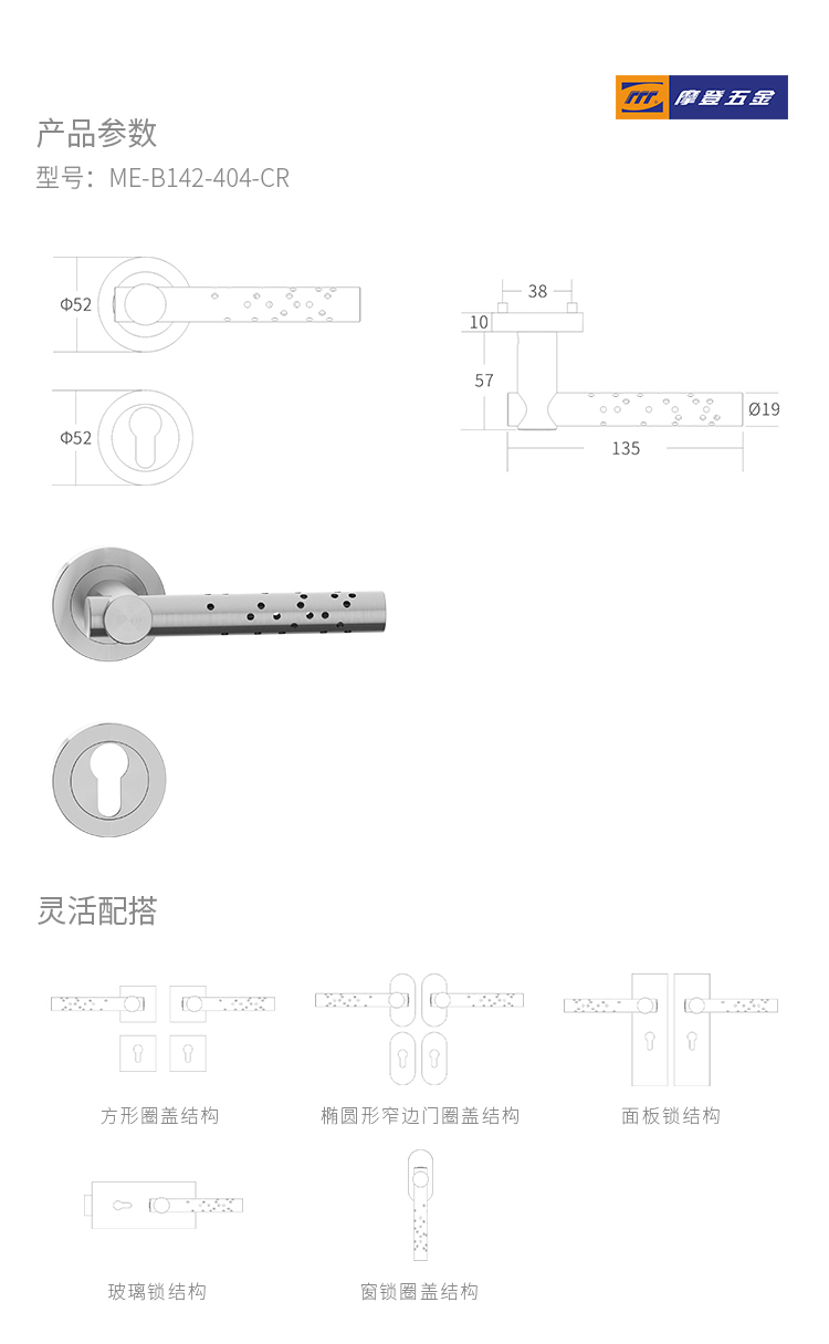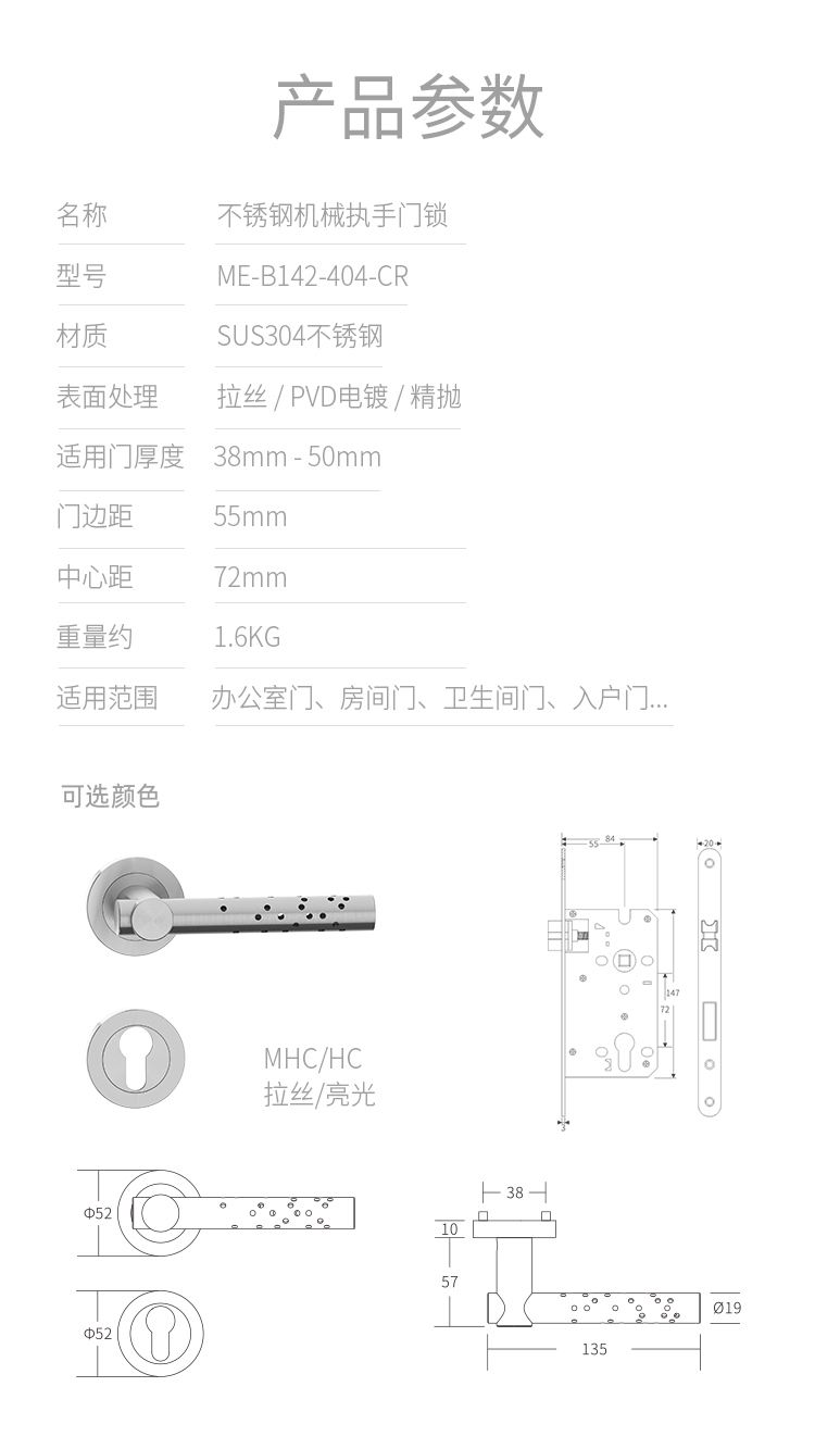 > Mechanical Lever Lockset - Stainless Steel > B142 SERIE-(Sandwich Threaded Rose) > Details