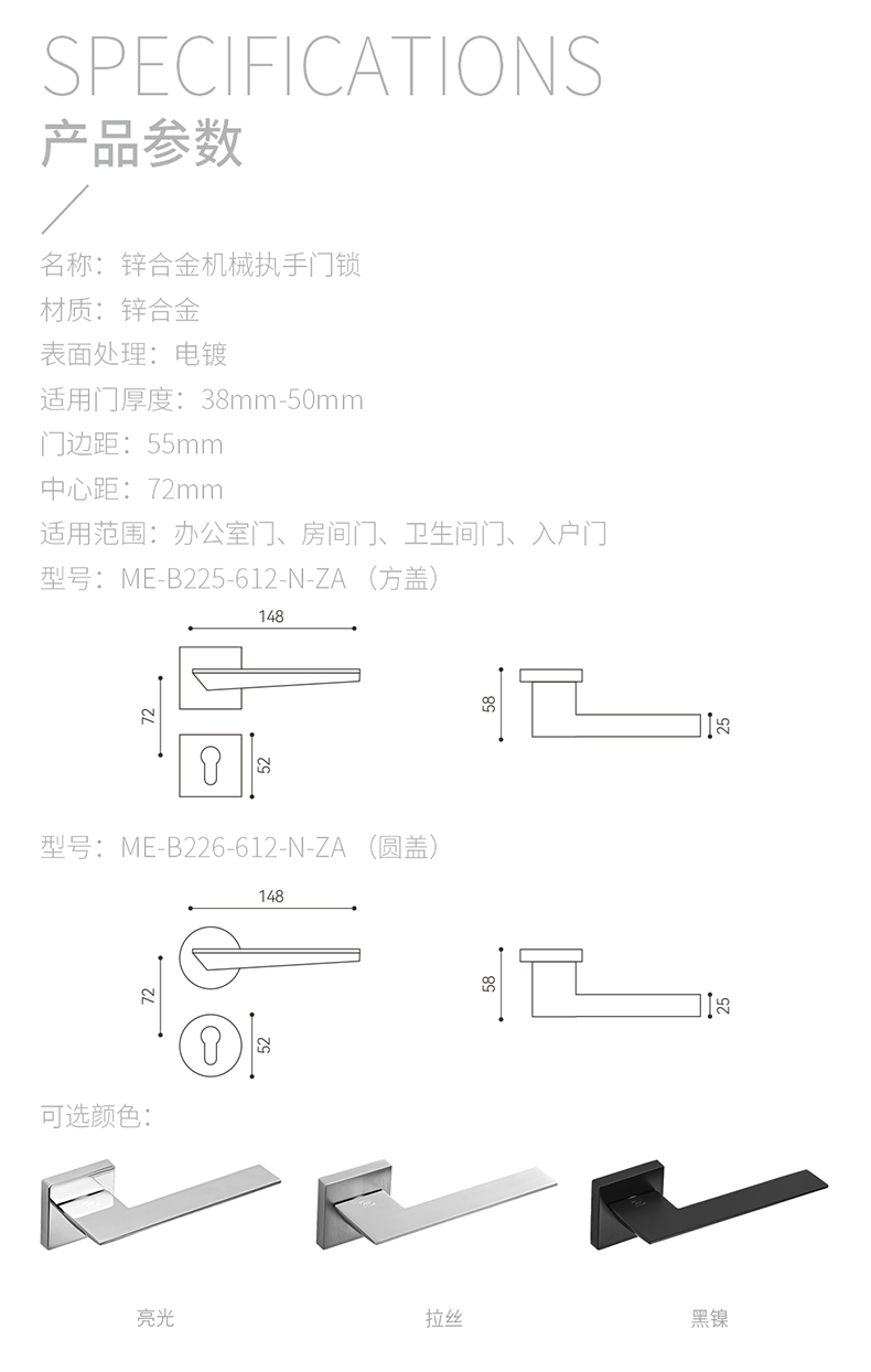 > Mechanical Lever Lockset - Stainless Steel > Zamak Leverset on Rose > Details